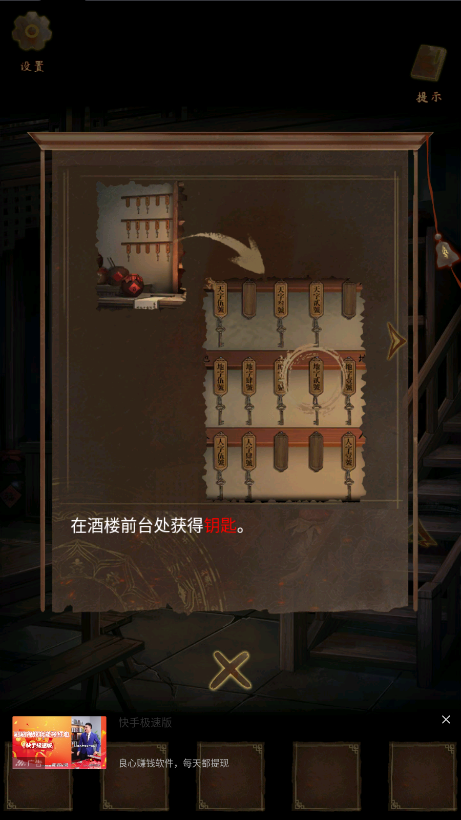 2、按照剧情,点击提示,按照提示去获得钥匙。