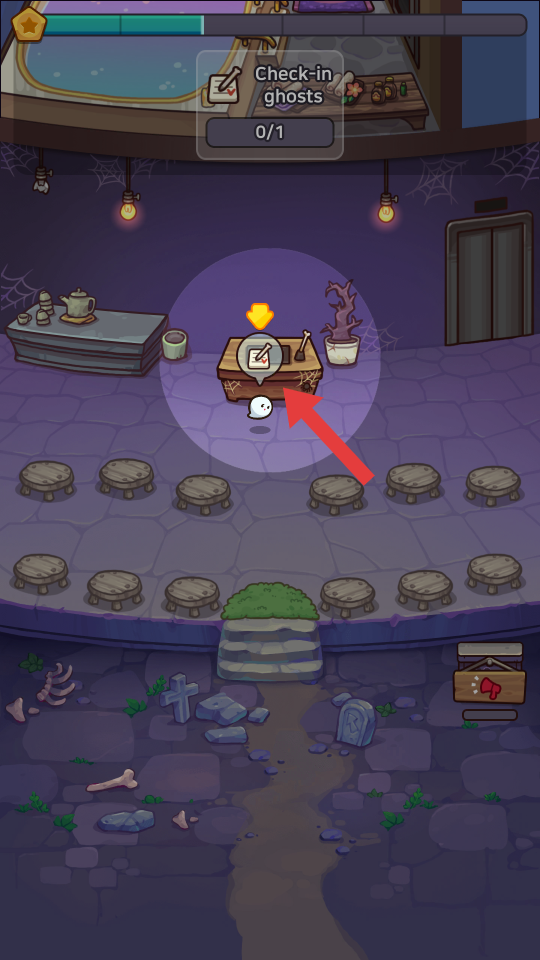 2、幽灵受邀后需完成Check in ghosts流程,引导幽灵到登记台点击登记,完成后幽灵正式入住,入住后幽灵会产生持续收益,还可能触发消费、互动事件。