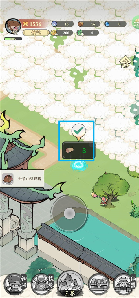 3、该前方的路被迷雾阻挡,用3根灵木即可驱散。