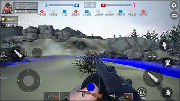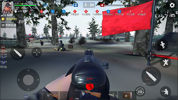 4、进入战场,左边轮盘控制人物移动,右边控制射击和瞄准。