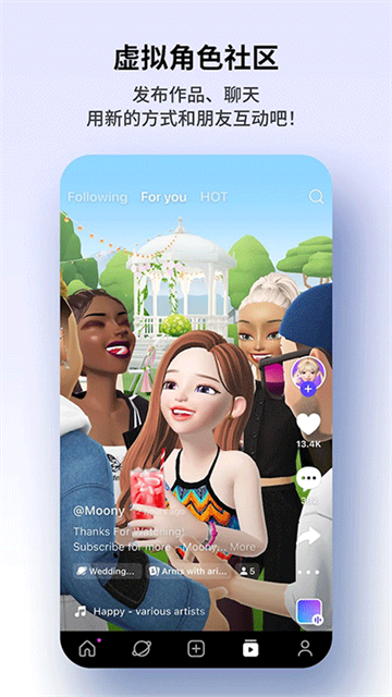 崽崽ZEPETO国际服是在国内非常流行的虚拟角色扮演类手游——崽崽ZEPETO的国际服版本,玩家将可以通过这款游戏认识非常多外国的朋友。游戏与国内版本的内容保持一致,并且增添了更多国际化的选项方便用户使用。你将可以将你制作的虚拟角色视频一键分享到推特、reddit、ins等国外热门的设计平台,收获一群粉丝的点赞与关注吧。