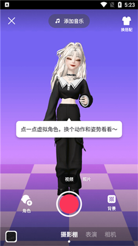 9、点击虚拟角色进行视频拍摄。