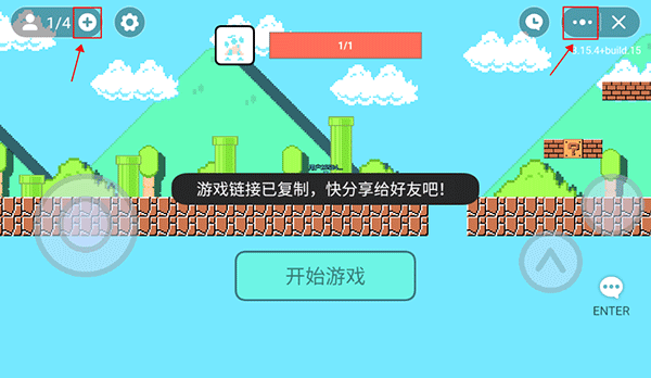 3、点击左侧的“+”号或者右侧的“…”可复制游戏链接,将链接发送给好友即可进行联机。