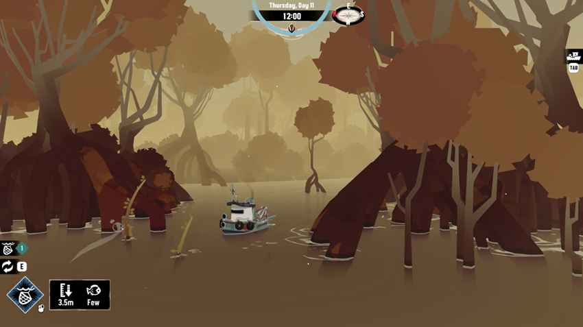 进入游戏后,白天是最安全的时间段,专注捕鱼,积累金钱并提升船只性能。