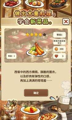 3、通过反复烹饪提升菜品等级,解锁更多高级料理和独特配方。