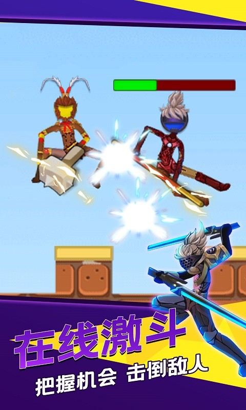 火柴人决斗,一款超刺激的竞技游戏!独特火柴人风格,简约而不失魅力。游戏中动作流畅,打击感十足,让你仿佛置身激烈决斗现场。丰富多样的技能组合,玩家可自由搭配策略,展现个性战斗方式。多种场景随机切换,增添游戏新鲜感。还能与全球玩家实时对战,一决高下。无论你是休闲玩家还是竞技高手,火柴人决斗都能为你带来畅爽刺激、乐趣无穷的游戏体验!