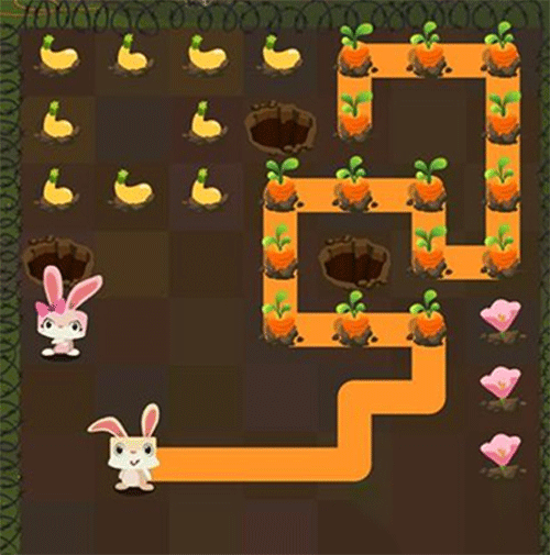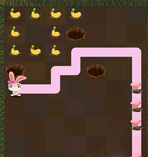 第二步:小兔子解决掉胡萝卜,如上图走路的方法。