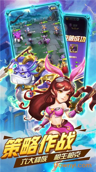 游戏内:森林、城堡、荒原、地狱、光明、暗影6大阵营属性制衡玩法,在对战中选择相克的英雄并发挥阵型优势你便能以弱胜强!更有阵营光环系统,不同的搭配会让不同阵营的英雄产生各类增益效果。不只是等级和数值的碾压,请享受不同策略搭配带来的致胜体验吧!