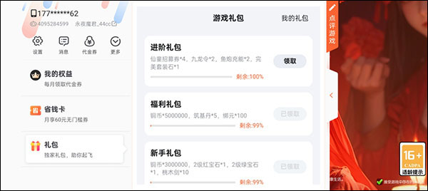 2、然后点击礼包功能就可以看到所有免费领取的福利了。