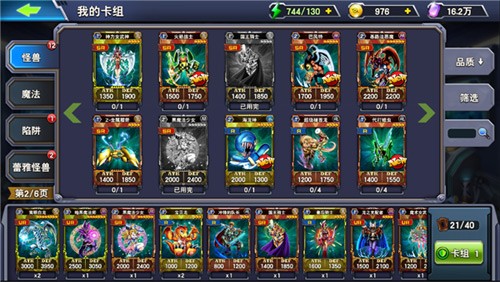 玩家可以通过多种途径收集海量经典卡牌,暗黑魔法师、黑魔法少女、青眼白龙、青眼究极龙、鹰身女郎等强大王牌尽数登场。策略搭配怪兽卡、魔法卡和陷阱卡,自由构建个性卡组,挑战各路决斗高手。