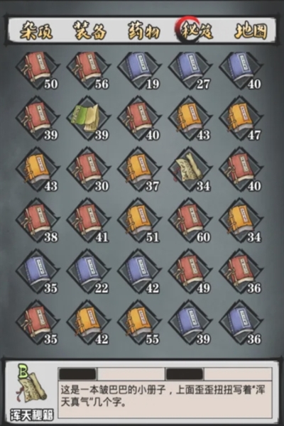 回到沧州(2,4)青沟施石板处点击探索即可获得宝箱,打开后即可获得真武宝典(S剑法诉荡哄)一本、浑天真气(B内功)一本。