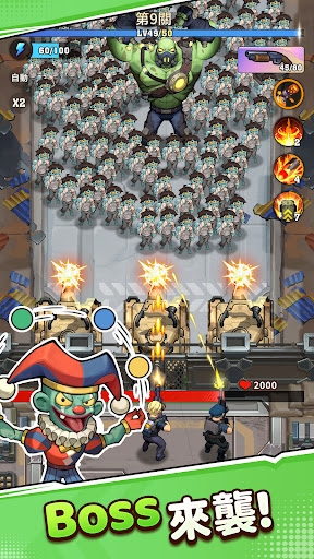 3、竖版射击模式,操作简单易上手,玩家只需滑动屏幕控制枪口的移动,并射击来袭的僵尸。