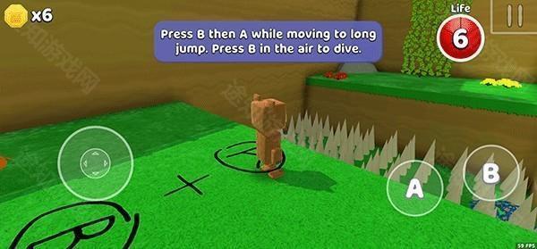 2、左下角轮盘按钮控制超级熊自由移动,右侧屏幕滑动旋转视角,正常情况下A跳跃,B攻击。