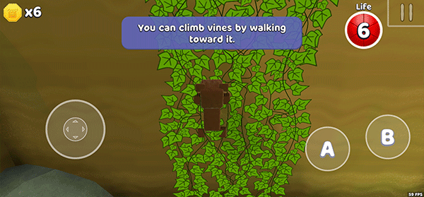 5、靠近树叶藤蔓,左下角按钮向上可以控制熊熊向上爬。
