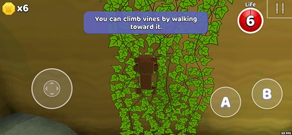 5、靠近树叶藤蔓,左下角按钮向上可以控制熊熊向上爬。