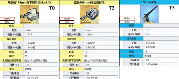 需要注意重巡炮前期***完全碾压高爆弹。