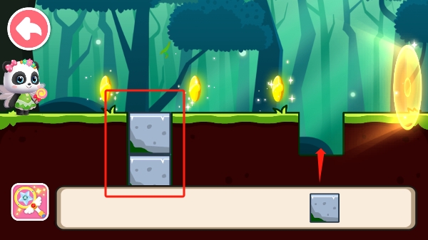 2、第二关将两个正方形石块填满道路上的坑就行了;