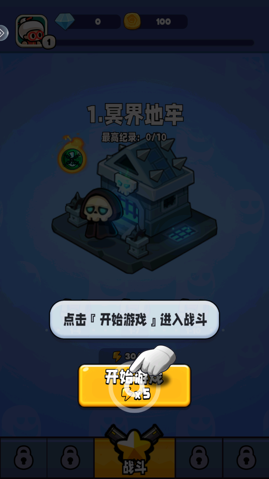 1、进入主界面,点击游戏开始。