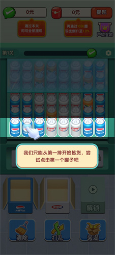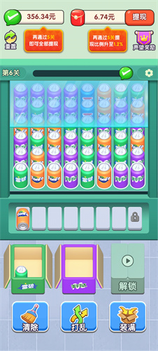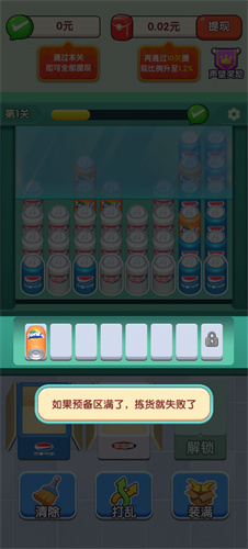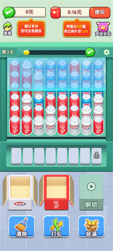 2.操作没有任何的难度,一键点击清除装满打包,点点屏幕就可以完成挑战。