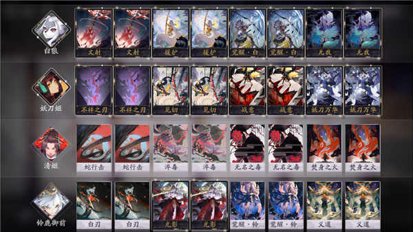 了解以上卡牌在“燃烧之魂”主题下的作用之后,玩家可以参考这些卡组构筑,来搭配自己喜欢的阵容。快攻抢血套可参考白狼、妖刀姬、清姬与铃鹿御前的组合,利用妖刀姬的爆发迅速完成斩杀,其他三名式神则可有直接伤害持续压低对手血量的能力,限制对面“燃魂”的使用。