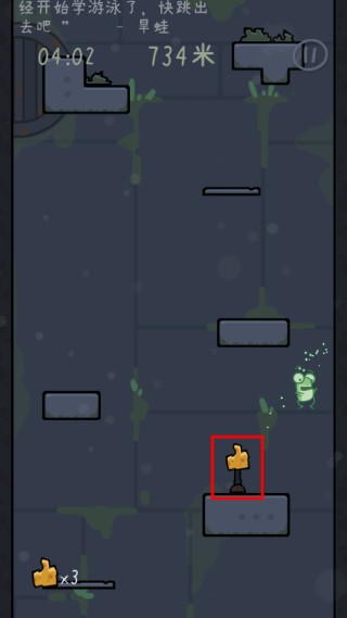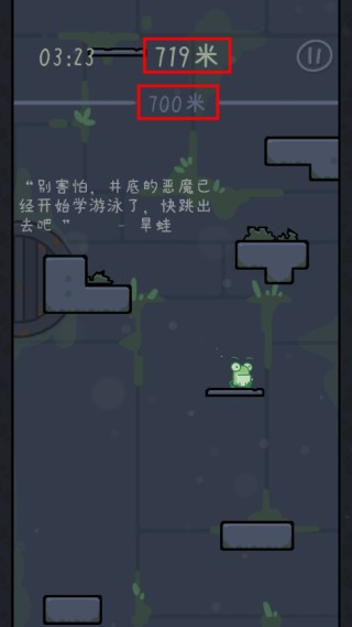 1、深井蛙游戏玩法很简单,只需点击屏幕让蛙蛙跳跃,目标是跳出井底。