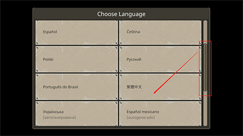 1、初次进入游戏我们需要手动选择语言,下滑找到“繁体中文”字样点击即可切换。