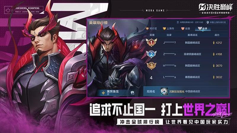 追求不止国一,打上世界之巅!冲击全球排行榜,让世界看见中国玩家实力;