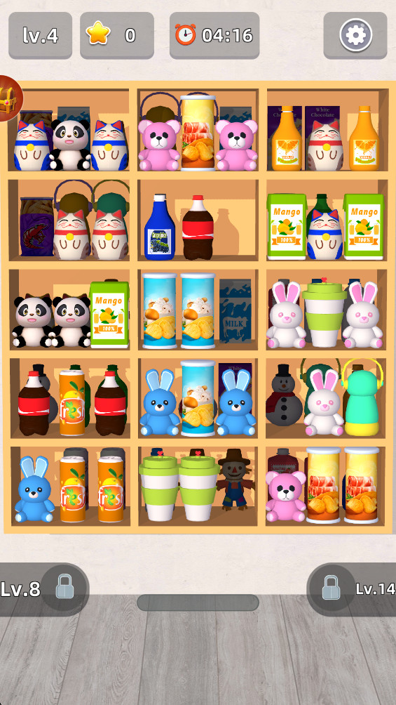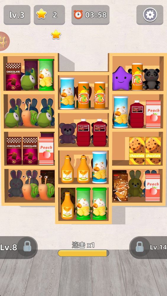 2、玩家将在游戏中遇到不同级别的收纳和放置挑战,必须去努力完成解锁关卡的操作;