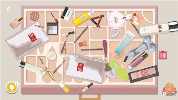 3、所有化妆品放进去之后,点击粉饼盒子打开。