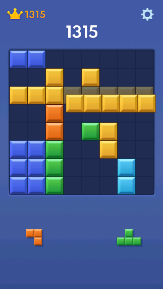 ·每一步的放置都将获得分数,棋盘没有放块的空间时游戏结束