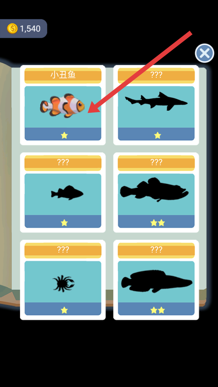 4、游戏有鱼类图鉴,能查看已钓到的鱼,像小丑鱼等,还有许多未知鱼类等待解锁,增加收集乐趣。