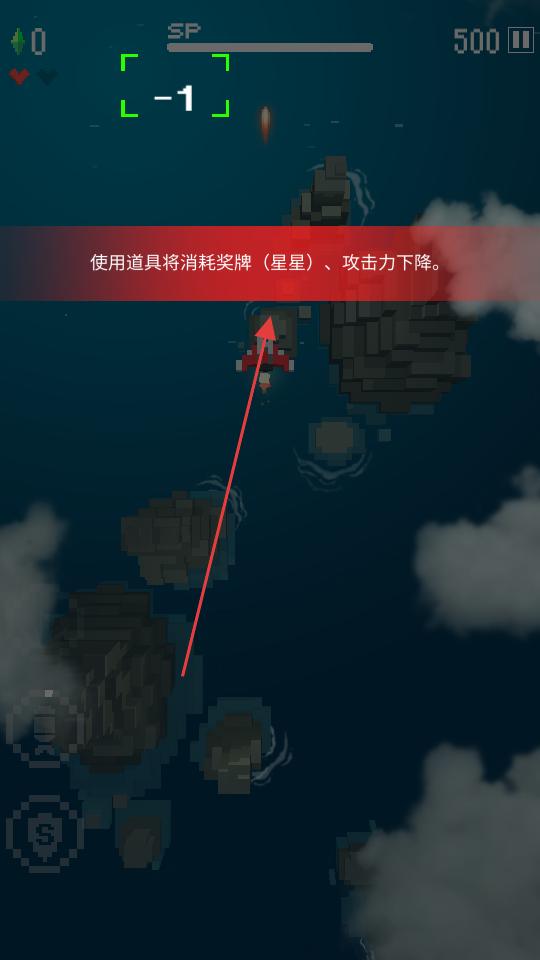 3、飞行过程中点击道具使用按钮,使用道具虽会消耗奖牌且使攻击力下降,但能获得相应效果,帮助应对当前状况。