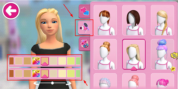 1、进入芭比梦想豪宅游戏,点击芭比头上图标,即可进入芭比换装页面