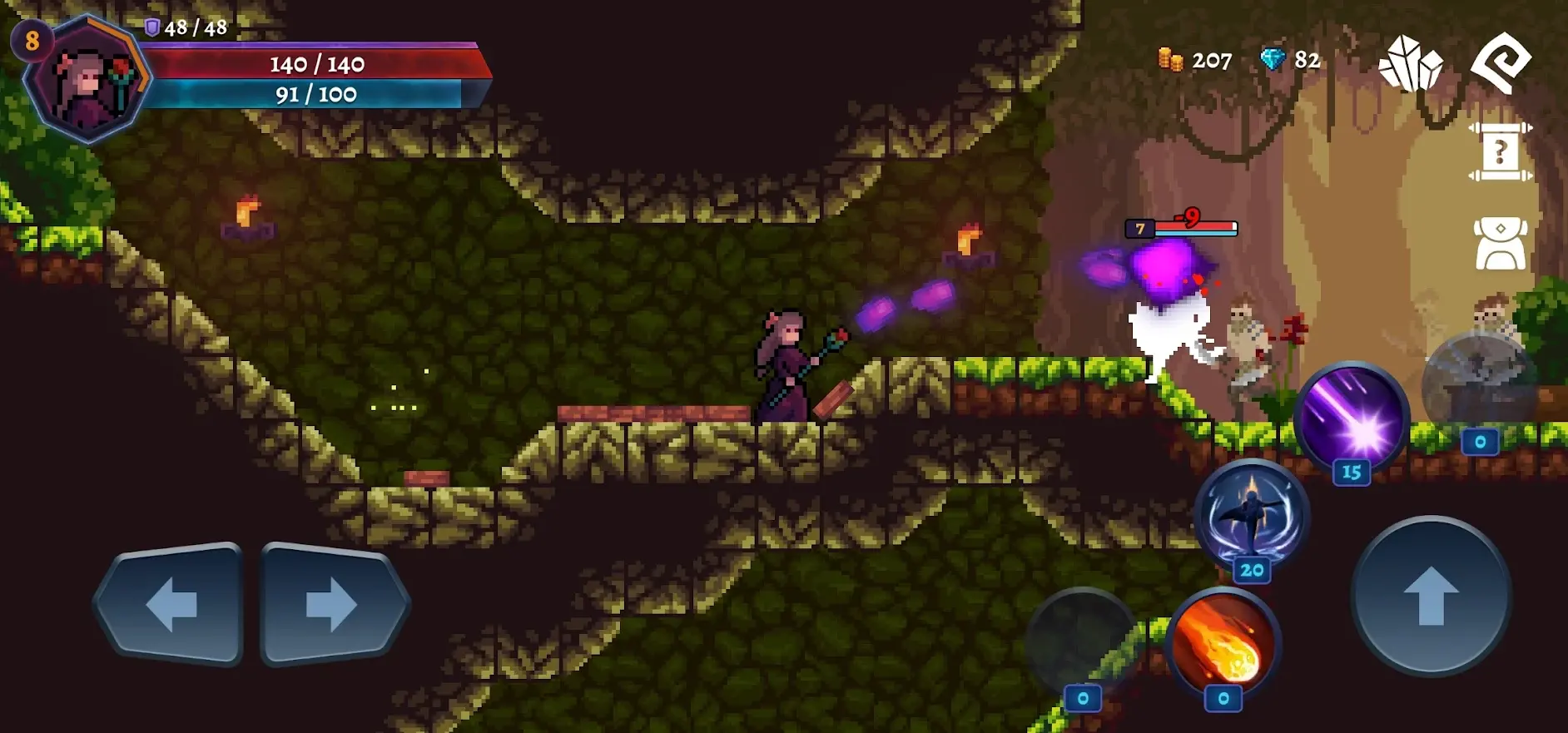 3、正式开始后左边控制角色的移动,右边是角色的跳跃、冲刺和技能按键。