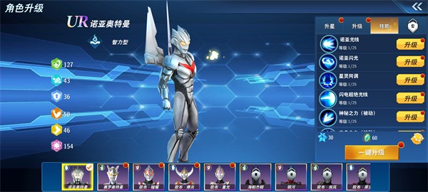1、丰富多样的奥特曼角色,玩家可以自由选择通过不断的战斗来增强实力以完成挑战,特技效果也很华丽;