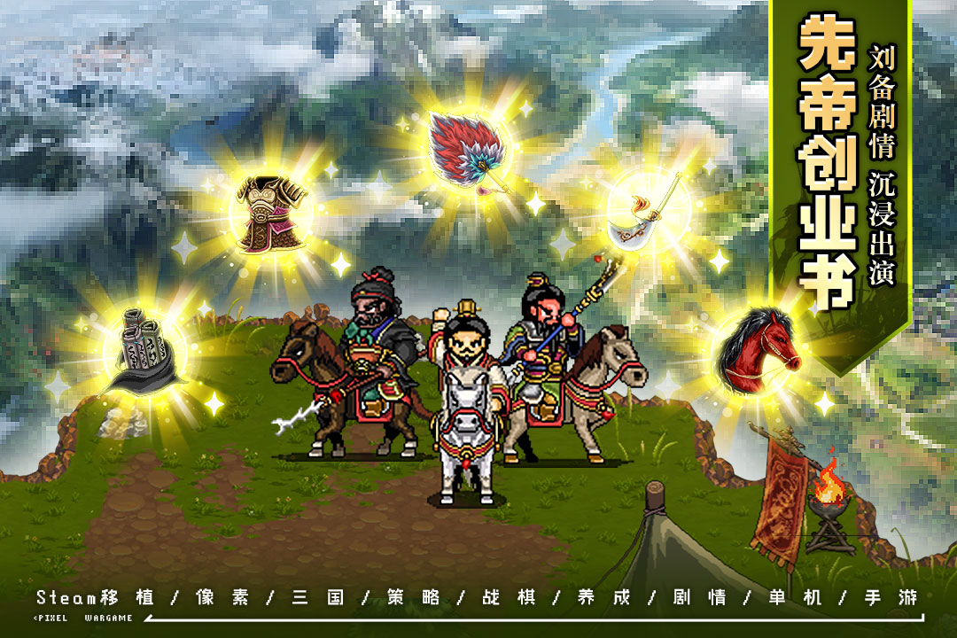 1、采用经典回合制战棋玩法,以刘备为主视角,从东汉末期黄巾之乱一路经历到三国时代。