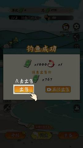 玩家开局拥有的钓法可以克制第二关和第三关的鱼种,快速积累大量的钱币进行升级。