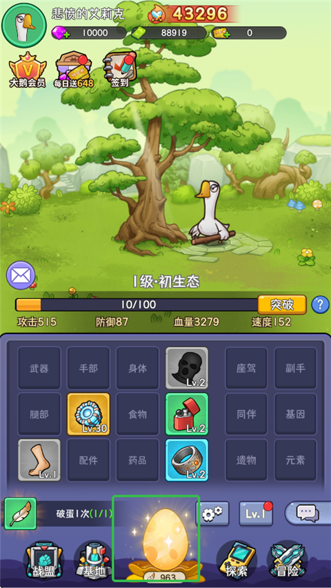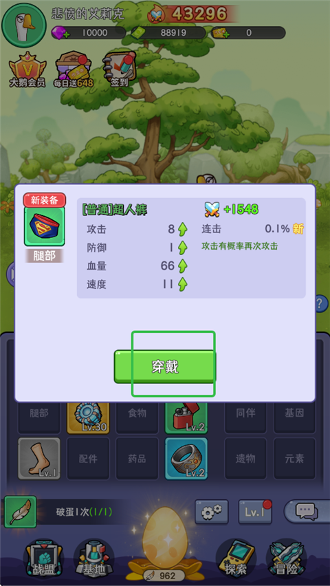 2、之后就可以开启宝箱了,还能获得装白,点击穿戴上即可增加攻击、防御、血量等属性;