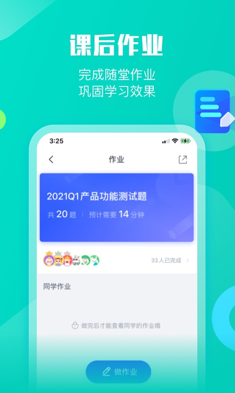 1、内置了课后作业和打卡任务功能,完成后可以在线提交,教师即时批改反馈。