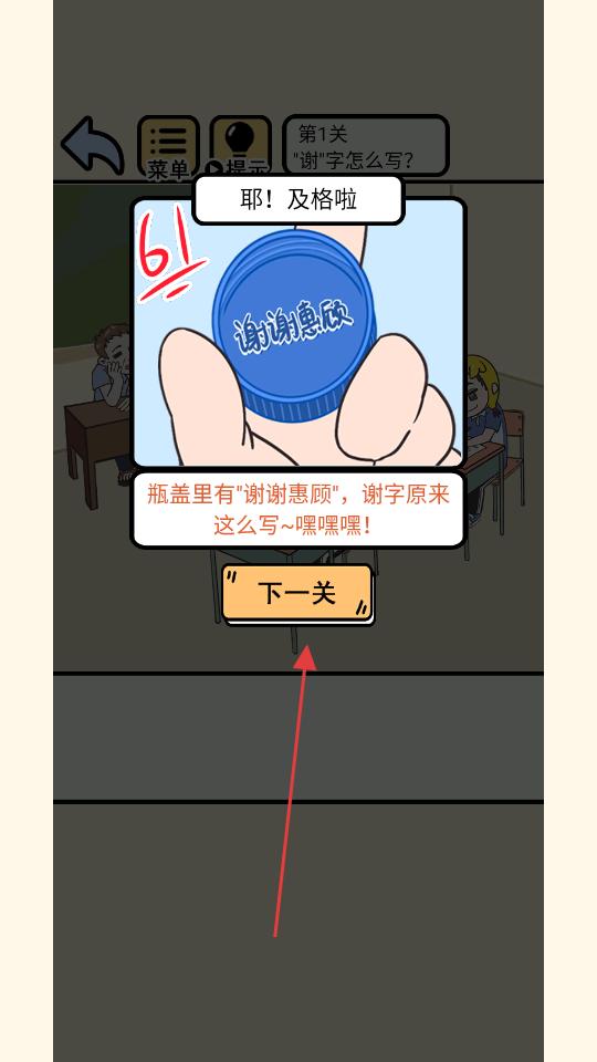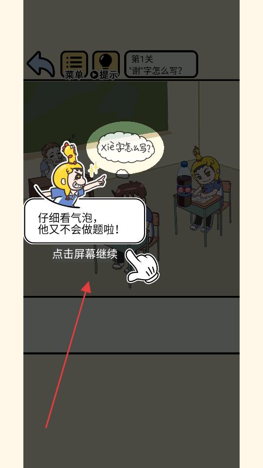 2、进入第1关根据关卡提示谢字怎么写,在游戏场景中寻找与谢字相关的线索,通过互动或操作,完成对谢字的学习任务。