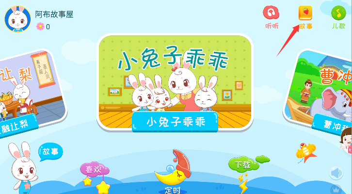 1、点击位于右上角的“故事”按钮,即可进入包含全部故事资源的列表页面。