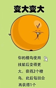 12、变大变大:你的橙鸟使用技能后变得更大。获得2个橙鸟。此后每回合再获得1个。