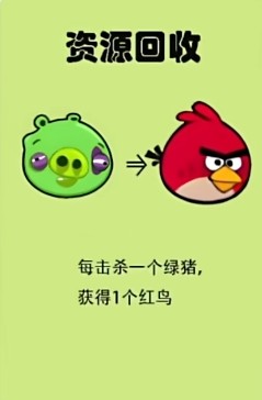 1、资源回收:每击杀一个绿猪,获得1个红鸟。