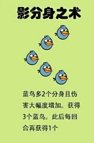 8、影分身之术:蓝鸟多2个分身且伤害大幅度增加。获得3个蓝鸟。此后每回合再获得1个。