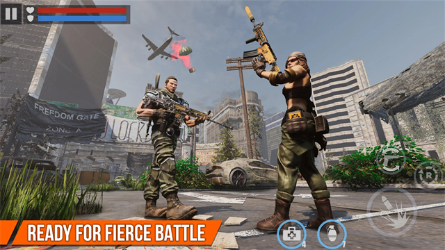 2、进入战斗后,拖动左下角的区域就能够转换视角,点击右侧的子弹按钮就能够射击了。
