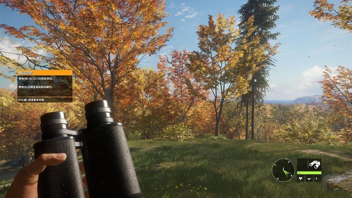 2、看到鹿时用望远镜确认一下,望远镜中心对准鹿,出E提示时按E可以确定是什么鹿,然后悄悄摸近。
