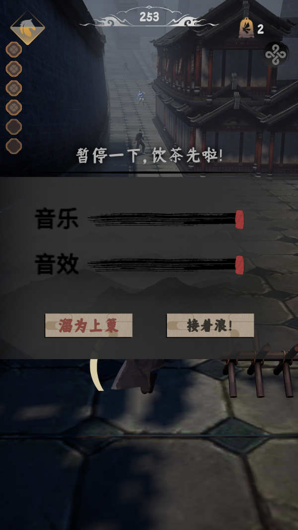 2、障碍敌人应对:在跑酷过程中灵活运用轻功武学,躲避塌陷桥梁机关箭雨并击退各类敌人。
