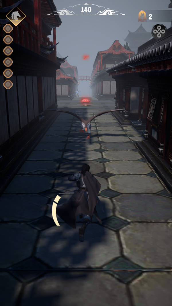 1、轻功施展穿梭:操控传奇侠客在中式场景中施展轻功疾驰穿梭,感受武侠跑酷的速度与飘逸。
