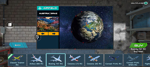 1、玩家在本站下载安装好遥控飞机模拟器汉化版后,打开进入在底部选择自己喜欢的飞机型号。