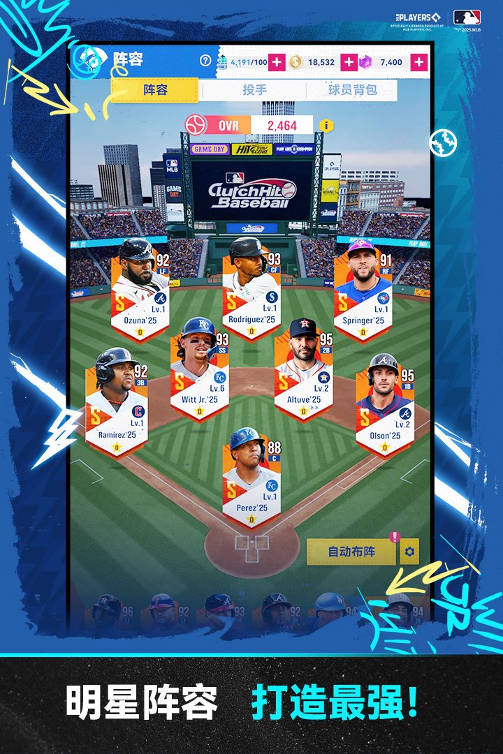 棒球大师手游是一款非常好玩的棒球题材游戏,游戏采用了顶尖的3D引擎打造,真实的场景画面搭配上流畅的击球动作,玩家将获得沉浸式的游戏体验。游戏中收录了全联盟超过2000名真实的球员数据,并采用先进的动作捕捉技术,真实还原了各个球员的技术动作。